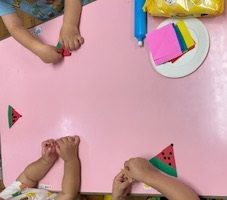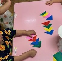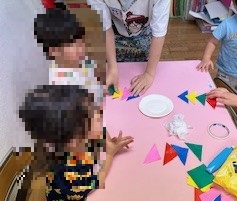 2歳児クラスの子どもたちが七夕の飾りを製作しました。