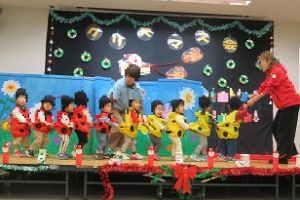 1歳児の「かわいいかくれんぼ」テントウムシになった子どもたちがかくれんぼをして遊んでいる様子。
