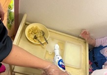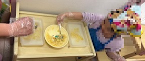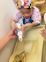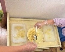 カルピスゼリーにももを入れてまぜまぜ・・・
