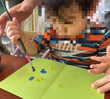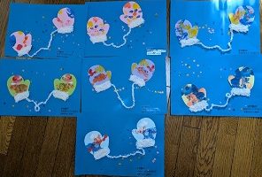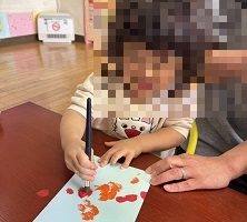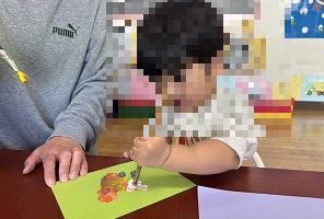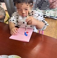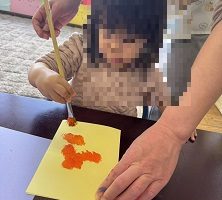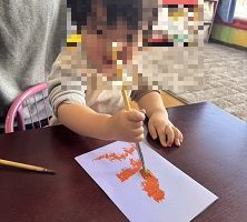 絵具を画用紙に塗って半分に折り模様を作りました
