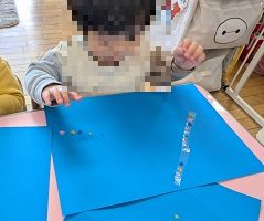 台紙には小さいシールをペタペタ…小さいシールも上手に貼れるようになりました