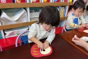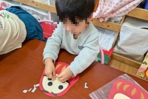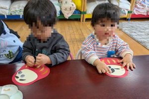 だるまに眉毛、目、ひげ、口をつけて完成です